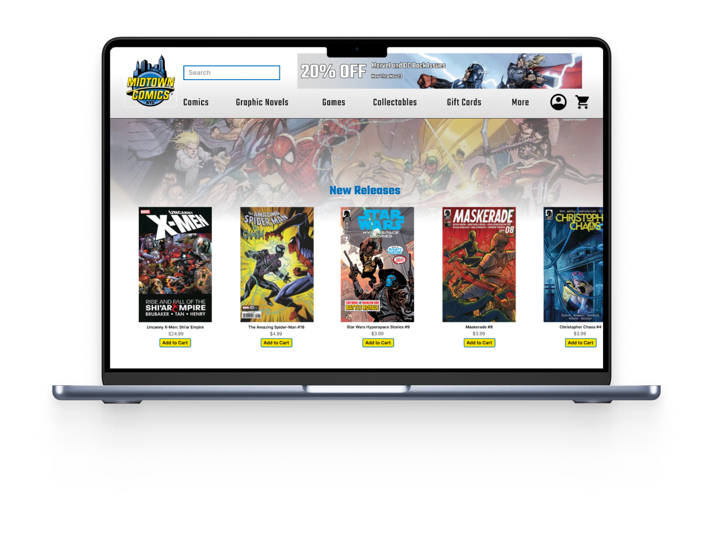 The goal of this project was to clean up the current homepage of Midtown Comics in a solo three-week sprint. My UX senses were tingling that the expert readers and collectors who use the site would want a more brand forward and visually stimulating experience, that allows them to find highly specific items quickly.