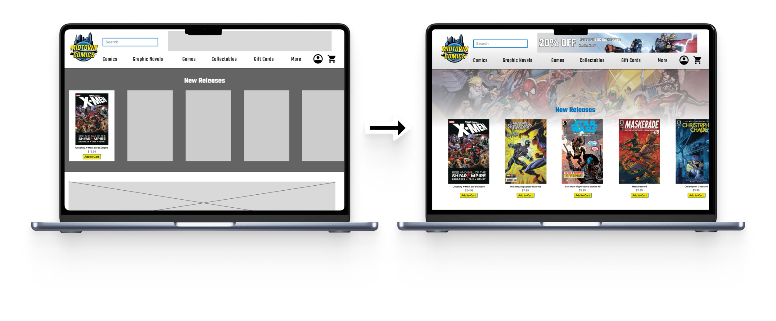 Enter Mike. Mike, like many comic book readers, is part of a specific fan base and web user; he knows exactly what he’s looking for and wants a clear path to his goal: in Mike’s case, the next X-Men trade *paperback Hellfire Gala - X-Men: Fall of X! In this case study we’ll explore how I helped our user, Mike, obtain his anticipated TP with minimal navigation and maximum brand experience.